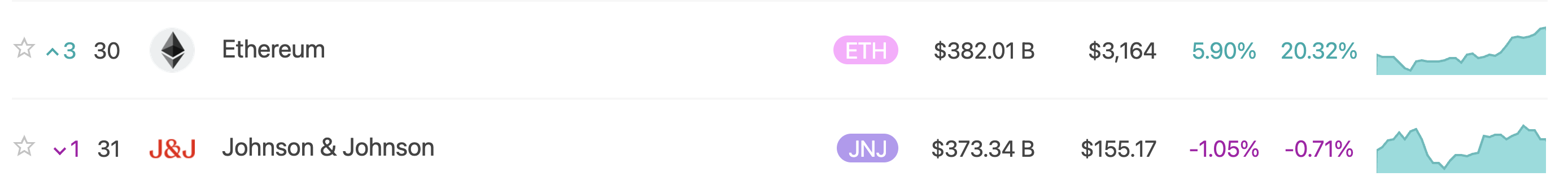 Ethereum Overtakes Johnson & Johnson, Becomes 30th Largest Asset Globally