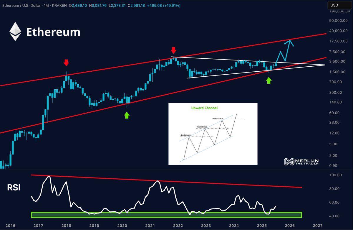 “Triple RSI bounce. Macro channel intact. Price has been coiling for months. When ETH explodes from here…$5,000 is just the warm-up,” Merlijn claimed.