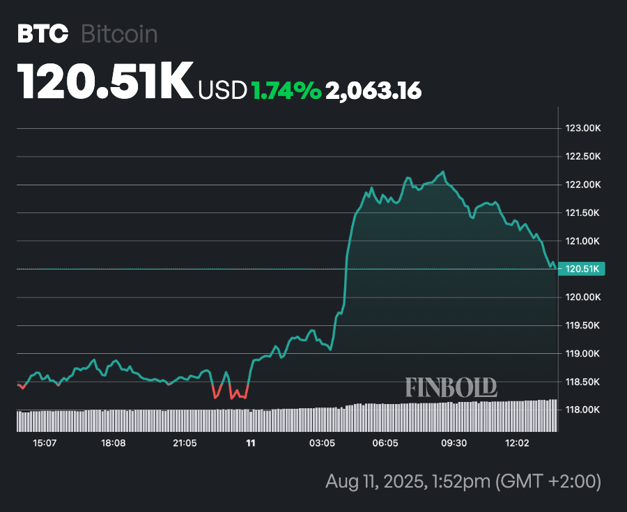 At press time, Bitcoin was trading at $120,512 with a 5.36% gain in the last 7 days and 1.71% in 24-hour volume. The asset is currently testing resistance levels near its previous all-time high of $123,091, with technical indicators suggesting room for further gains.