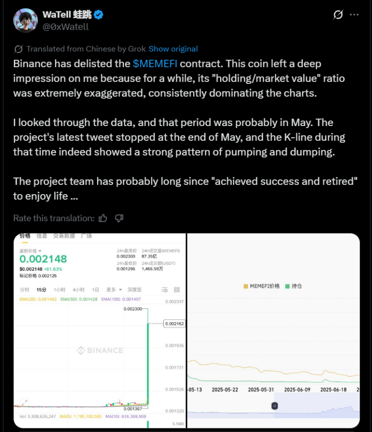 MEMEFI soared nearly 200% today after Binance delisted its perpetual contracts, sending trading volume to new heights. This sharp rally, largely fueled by forced short covering, drew widespread attention—and growing skepticism—across the crypto community.