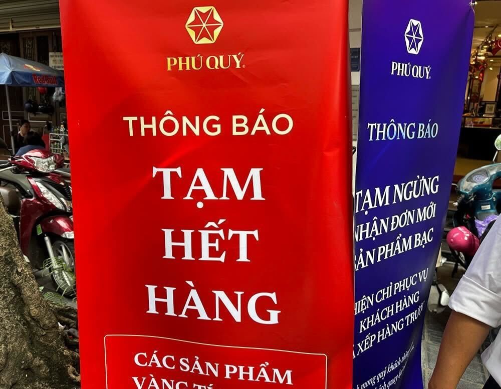 The retail FOMO (fear of missing out) compels “Temporarily out of gold for sale” signage at some of the largest gold systems in Vietnam.