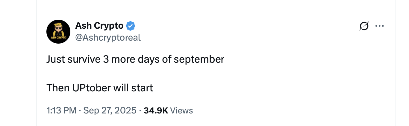 With three days left in September, bitcoin hovers around the $109,000 range and the market’s already chanting “Uptober,” the crypto calendar’s most meme-able month for momentum.